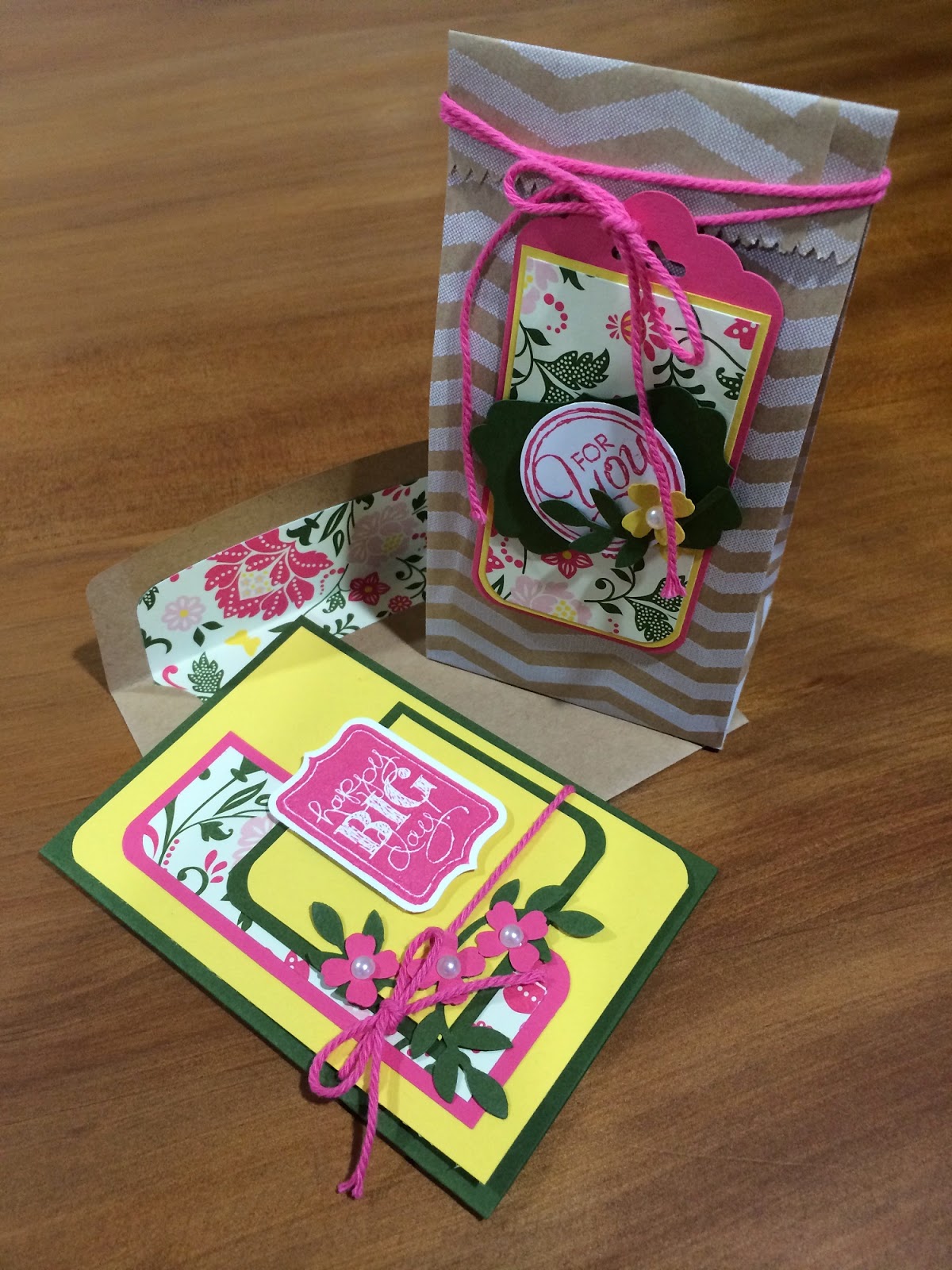 Cardstock: Daffodil Delight, Mossy Meadow, Strawberry Slush and Whisper White